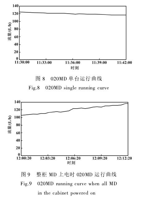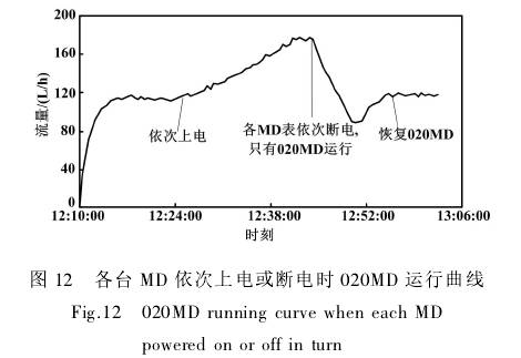 從圖12可以看出,當(dāng)每個(gè)流量計(jì)依次斷電,作為一個(gè)020MD運(yùn)行時(shí),020MD的流量是穩(wěn)定的。