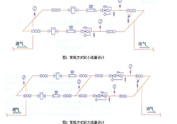 圖1示出了常規(guī)小流量渦街流量計的設置方案,圖2示出了常規(guī)大流量渦街流量計的設置方案。 流量計是基于理想流量計設計的。 一旦流量計出現(xiàn)超精度偏差和故障,就會出現(xiàn)計量損失,并且這是無法彌補的。 盡管該設計為雙通道一開一待機,但無法在工作狀態(tài)下進行測試,因此無法確定新安裝的儀器以及一段時間內工作的儀器的實際性能和狀況。 因為只要電表旋轉,就很難用肉眼看到問題,除非電表停止或不顯示數(shù)字。 如果儀表停止運行或不顯示數(shù)字,管理人員沒有觀察到或人員不在現(xiàn)場且氣體仍在流動,則不會出現(xiàn)計量現(xiàn)象(流量計停止旋轉而不會影響氣體流量) )。